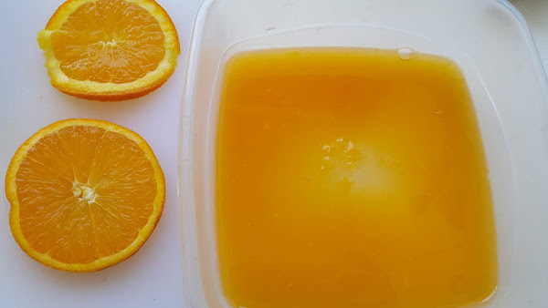 Lo primero que haremos será preparar la salsa. Para ello escurrimos el jugo de 2 naranjas reservando 2 rodajas para decorar.