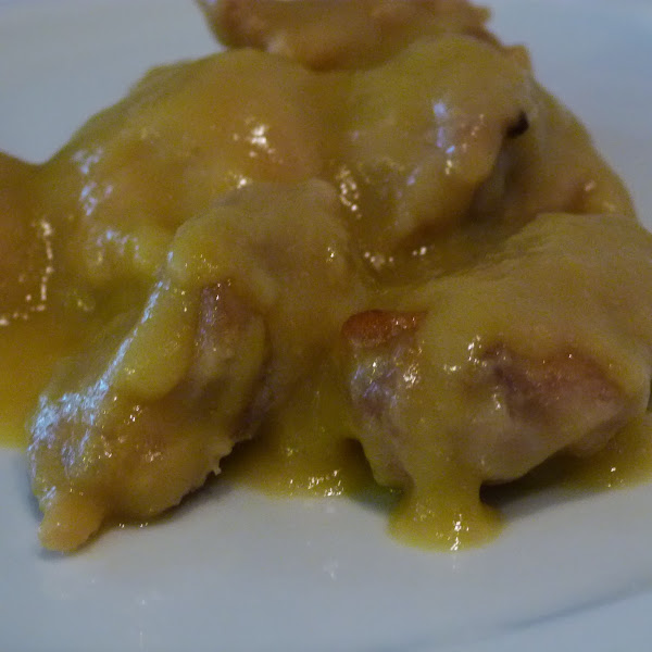 Finalmente, juntamos el pollo ya frito con la salsa que acabamos de crear en una cacerola, lo dejamos cocer unos minutos y?. ¡¡Listo!!