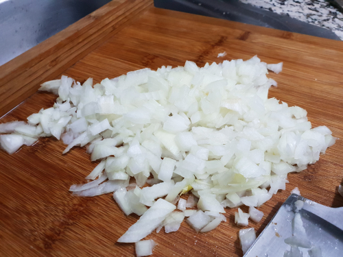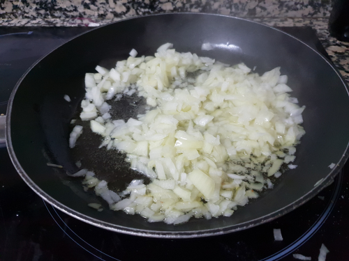 - Pelar y picar la cebolla.