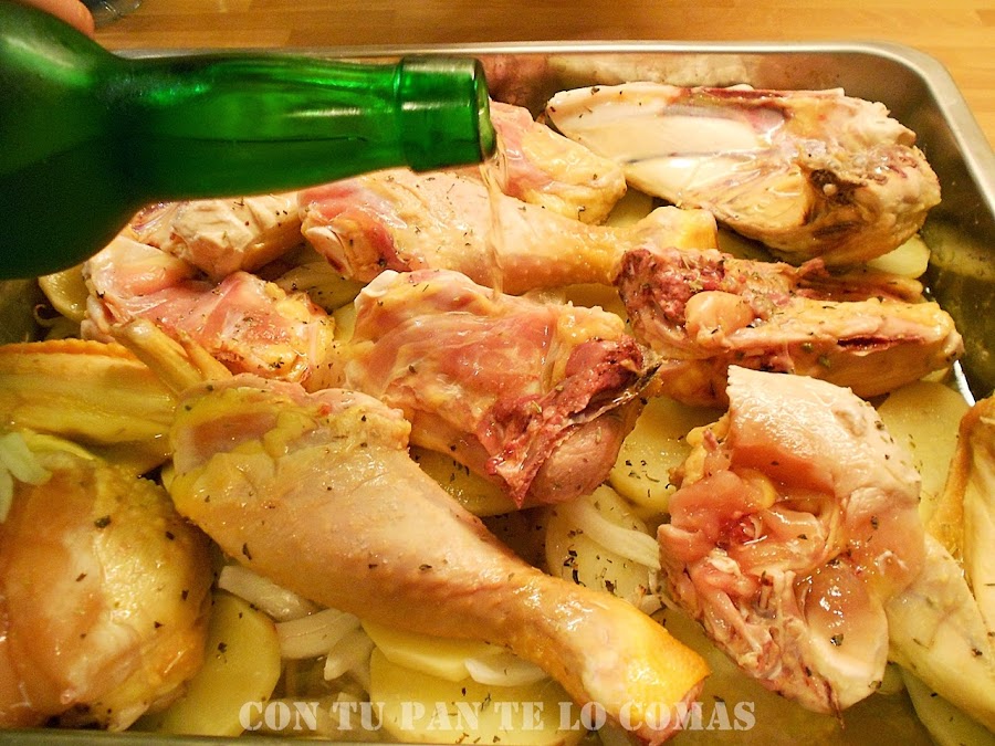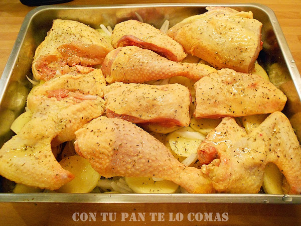 Entre la dieta, el pollo verde, mis vegetarianos y los nísperos ácidos, vas a pensar que se me han olvidado las recetas de siempre. Pues claro que no, y un pollo al horno es un plato de los que más me gustan, de los que haces la guarnición a la vez, lo metes al horno y te olvidas (ehh... no te olvides mucho porque te quedas sin pollo).