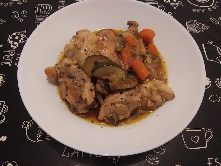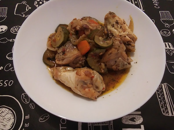 Me sobró media botella de sidra y la aproveché para hacer este guiso de pollo con verduras, que quedó muy tierno y con una salsa deliciosa.