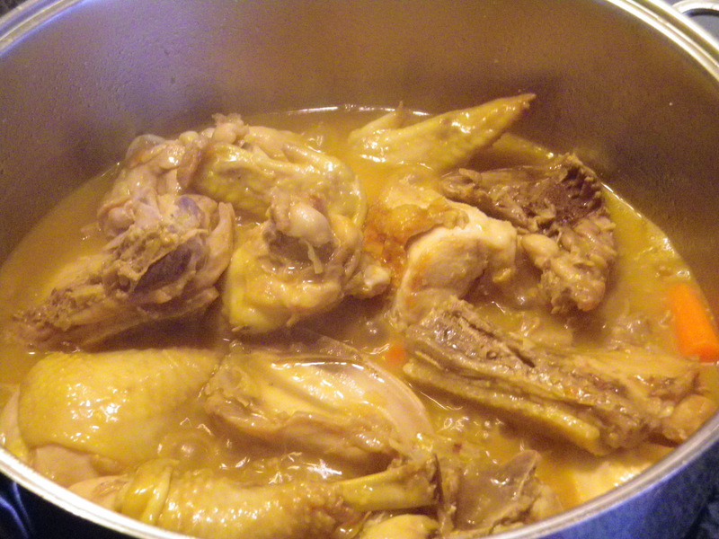 A los dos minutos aproximadamente agregar el pollo que previamente habéis frito y lo tenéis a fuego medio durante 20 minutos aproximadamente.