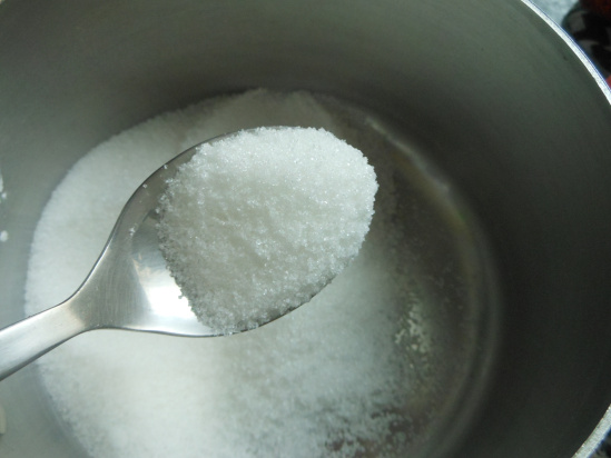 Comienza vertiendo en un cazo las 6 cucharadas de azúcar.