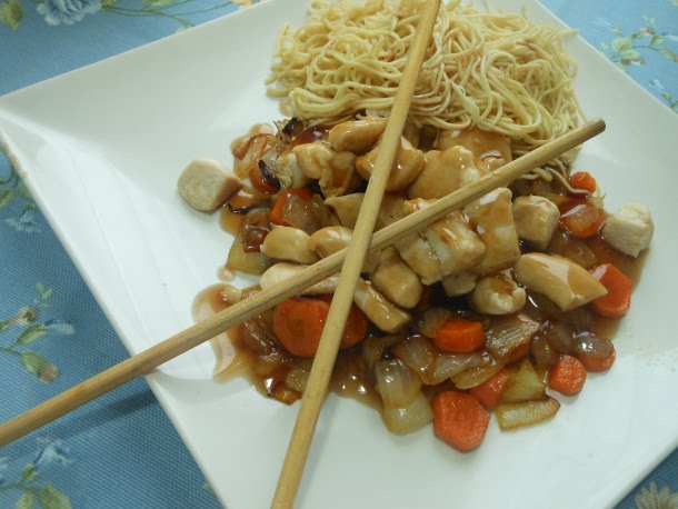 Y no sólo quiero compartir mi amor con todos aquellos que se asoman a mi blog, hoy también quiero compartir con todos vosotr@s este riquísimo pollo agridulce con fideos chinos, espero que os guste. Un abrazo.
