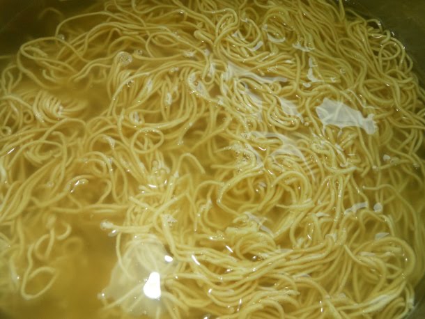 Por último vamos a elaborar los fideos chinos, para ello debes seguir las instrucciones del fabricante, en mi caso, vertí dos litros de agua en una cacerola y lo llevé a ebullición.