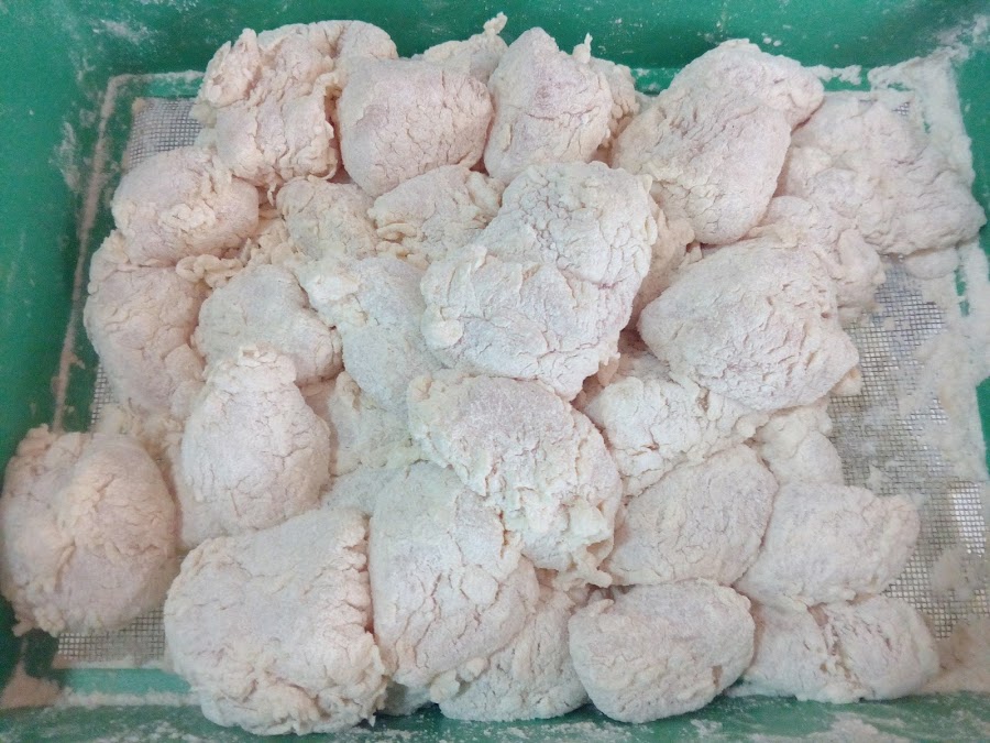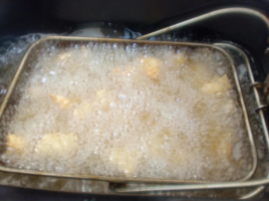 Freir los trozos de pollo en abundante aceite muy caliente.