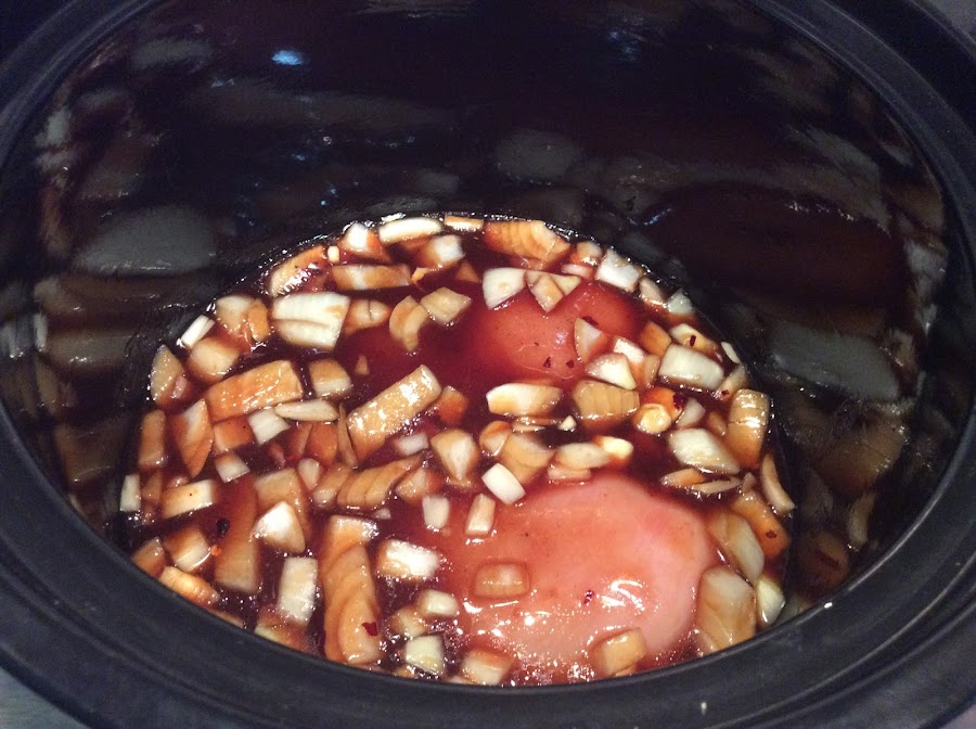 Salpimenta el pollo y colócalo en la cubeta slowpot.