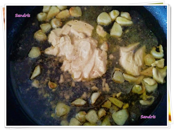 Unos 6 o 7 ajos (dependiendo de su tamaño, pero como quería que tuviera bastante gusto a ajo, pues más que menos le puse)