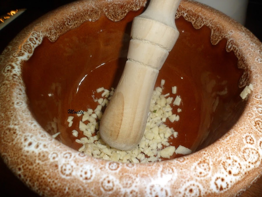 Mientras se va dorando prepararemos en un mortero el ajo picado, el perejil y lo machacaremos un poco.