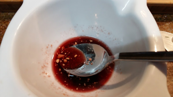 En el mortero picar las almendras y diluirlas con el vino.