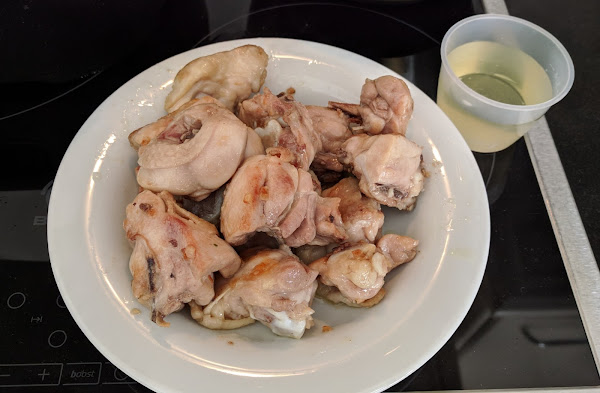 Si vas a continuar el cocinado en la fussioncook FC7 smart, te aconsejo que tengas otra cubeta untada y vas colocando el pollo y tapando, para que no se enfríe.