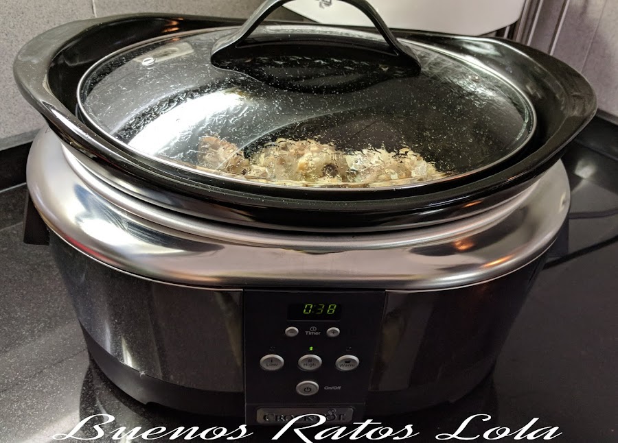 EN CROCKPOT.- Deja que se vaya haciendo lentamente en alta. A falta de una hora remueve. Al acabar no destapes la olla hasta el momento de servir. Si se te olvidó programar la crockpot programa 2 y 1/2 horas en alta
