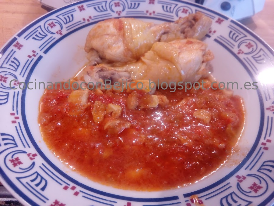 Y ya podemos servir nuestro plato d pollo al chilindrón.