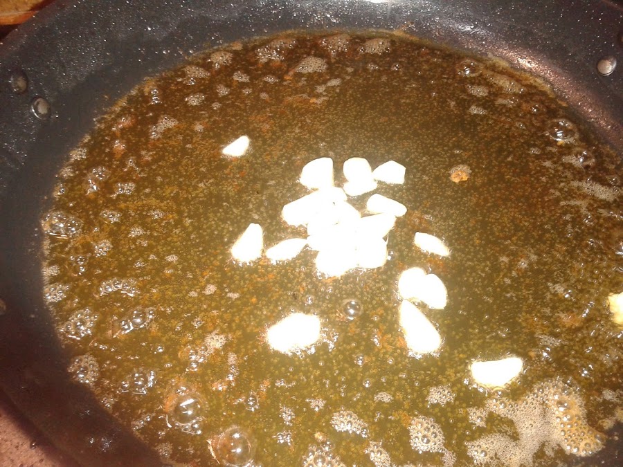 En ese mismo aceite doramos un poco los ajos a un fuego que no esté muy fuerte.