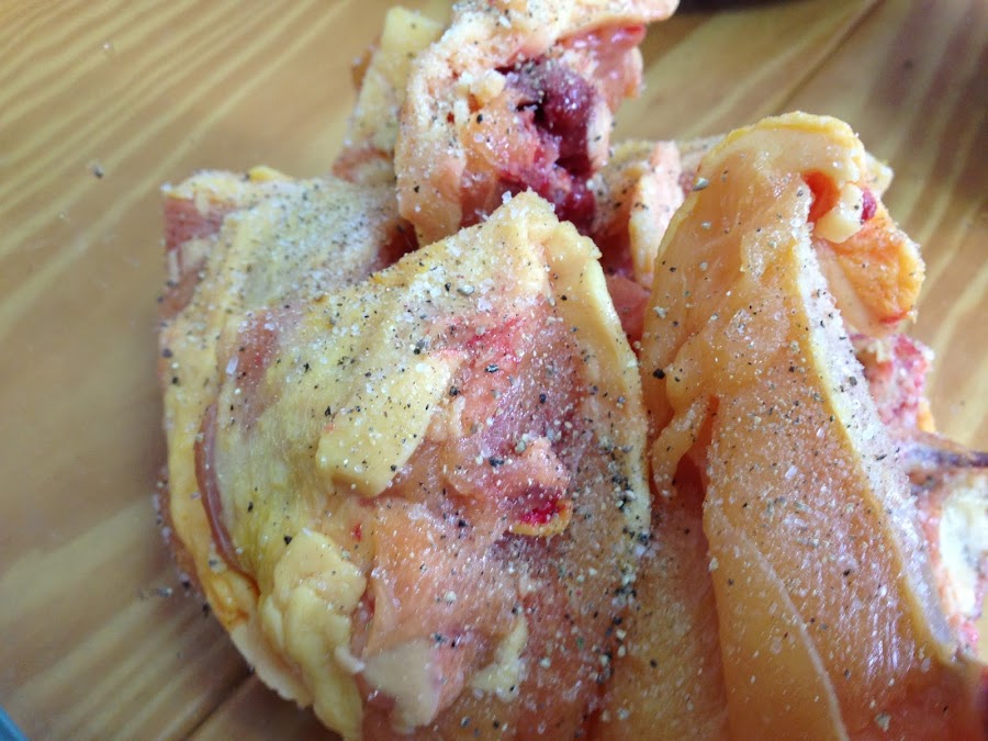 Tenemos 1/2 pollo cortado a trozos (en mi caso ha sido 1/2 pollo campero con una pinta excelente).
