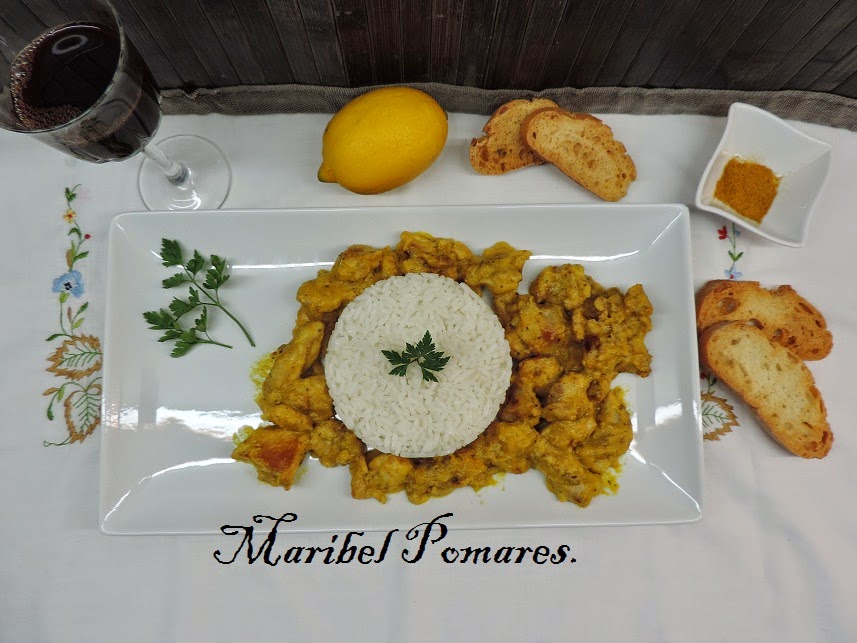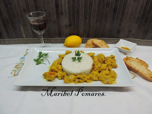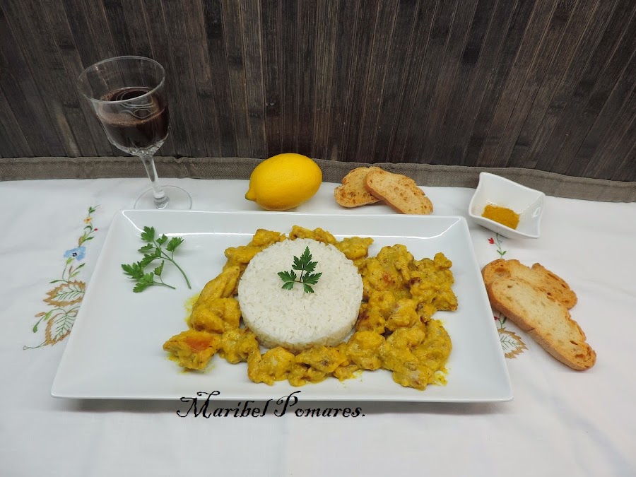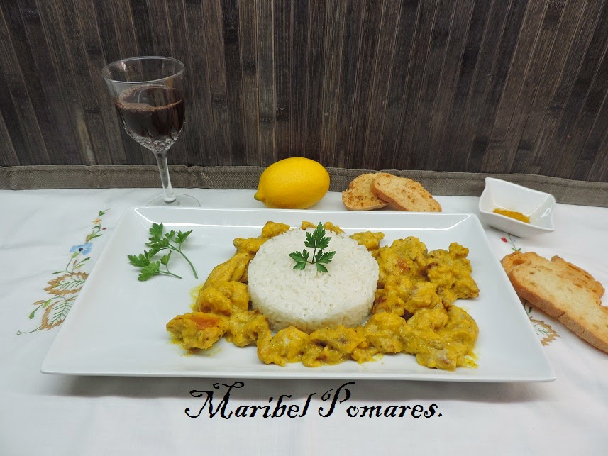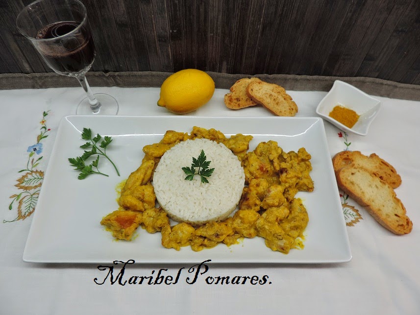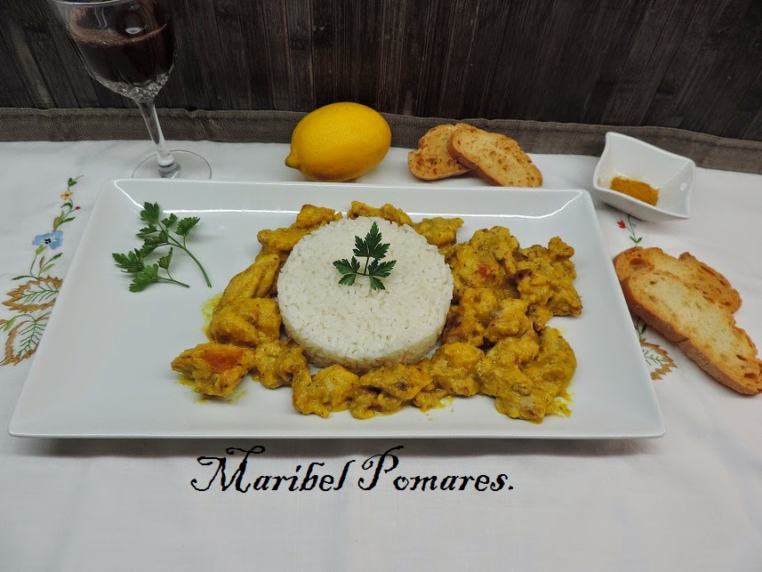 Ponemos en el centro del plato el arroz y el pollo rodeándolo.