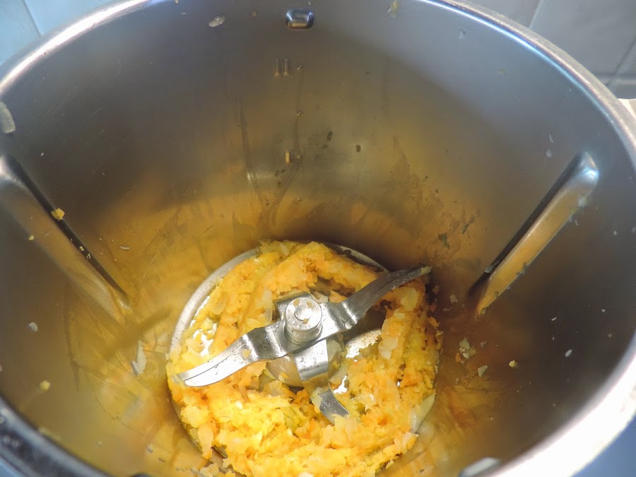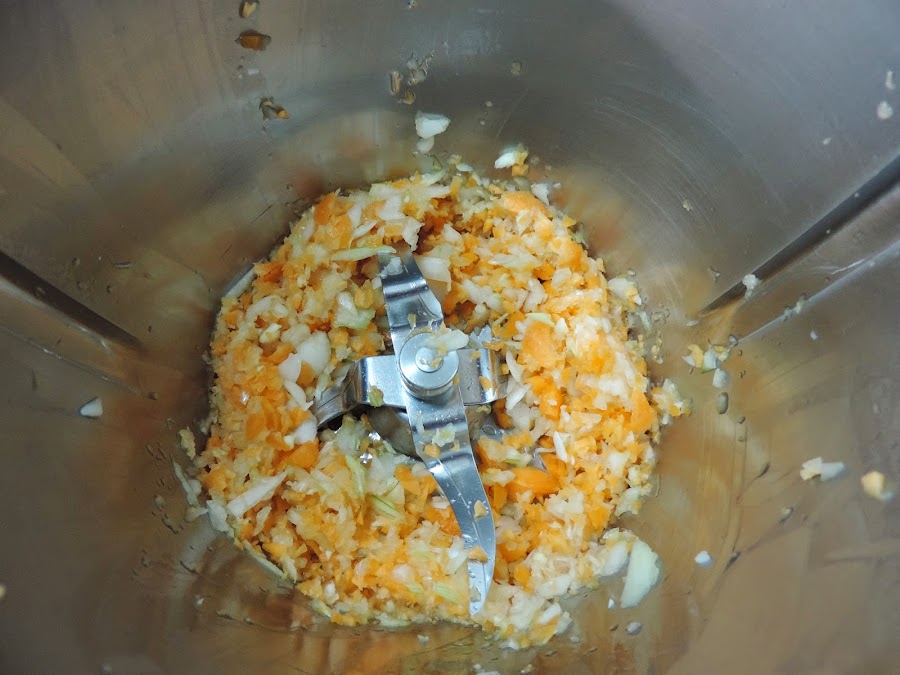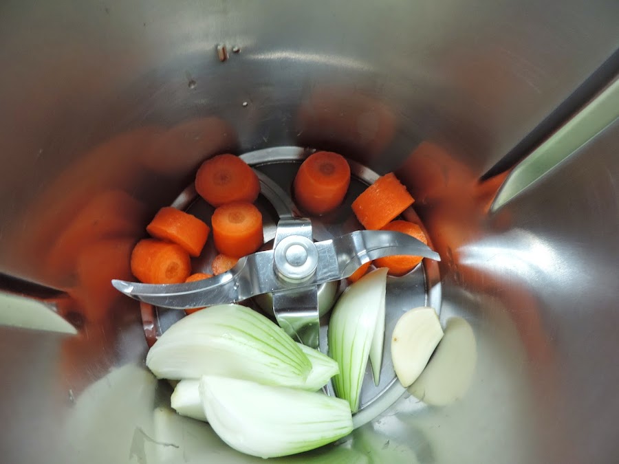 Ponemos la zanahoria, cebolla y ajo en el vaso del thermomix.