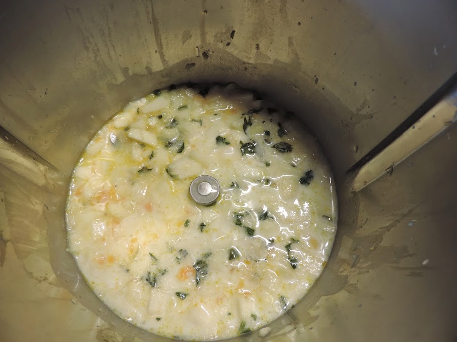 Esperamos que se enfríe un poco y programamos 30 segundos, velocidad 7, para que nos quede una salsa fina. Reservamos.