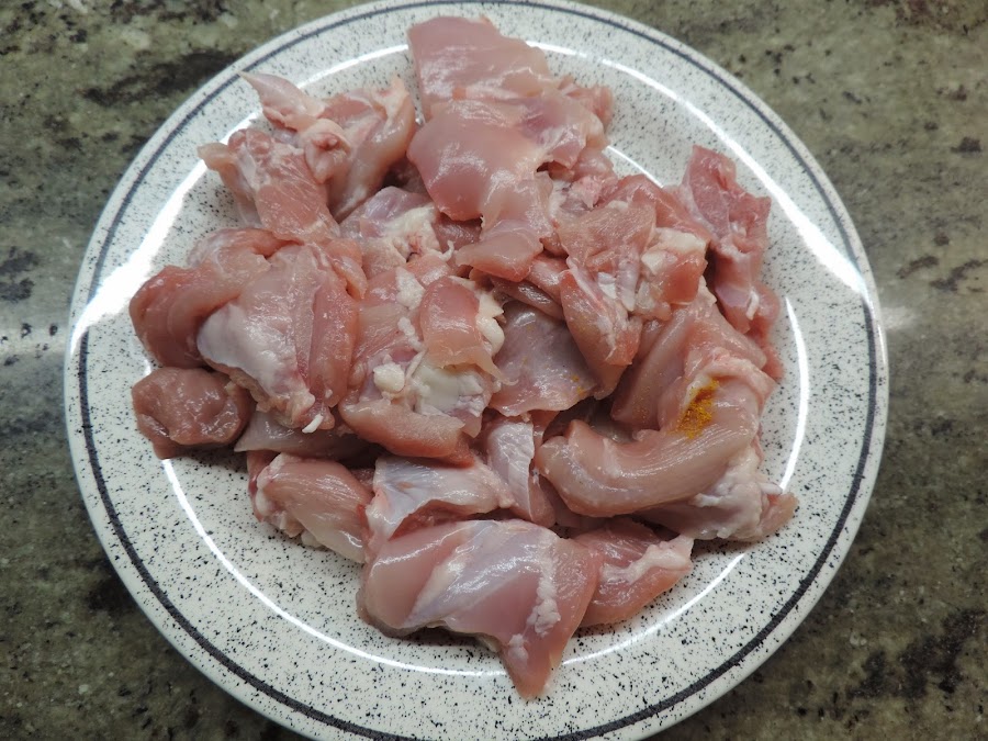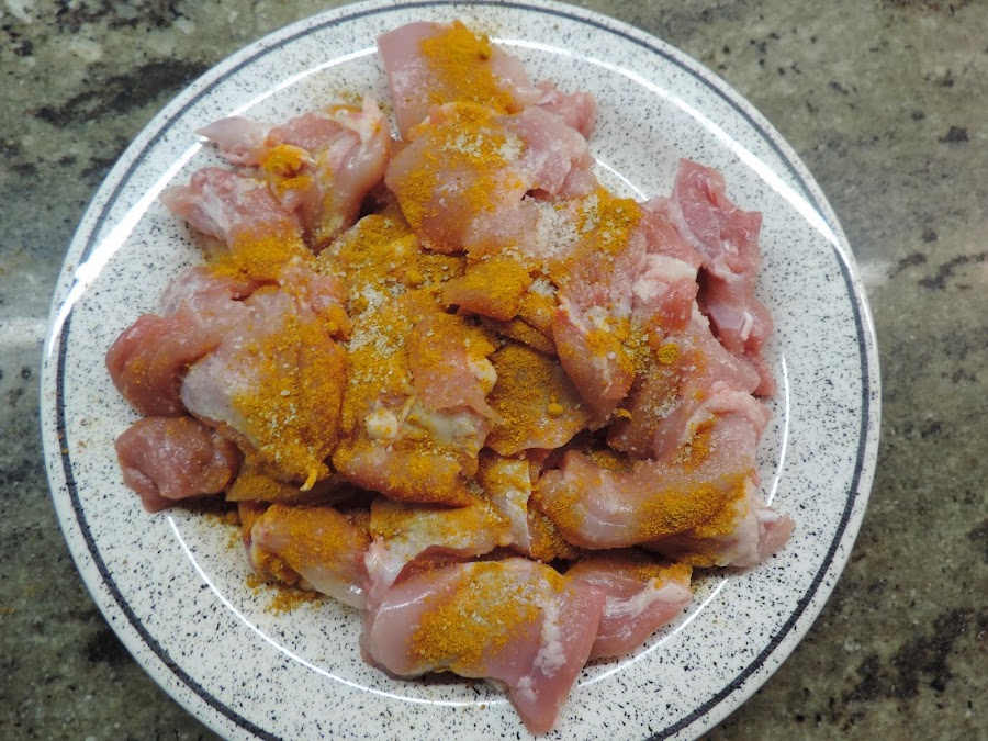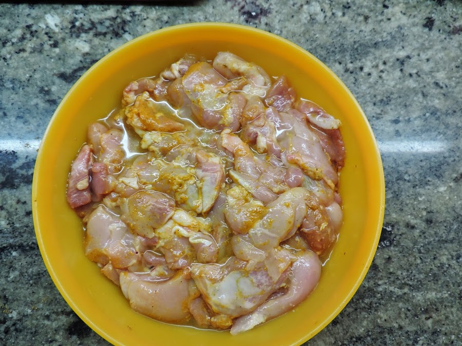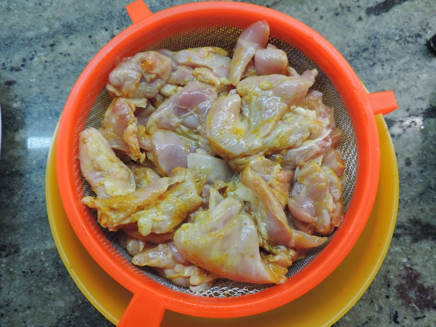 Pasado el tiempo de macerar, escurrimos el pollo.