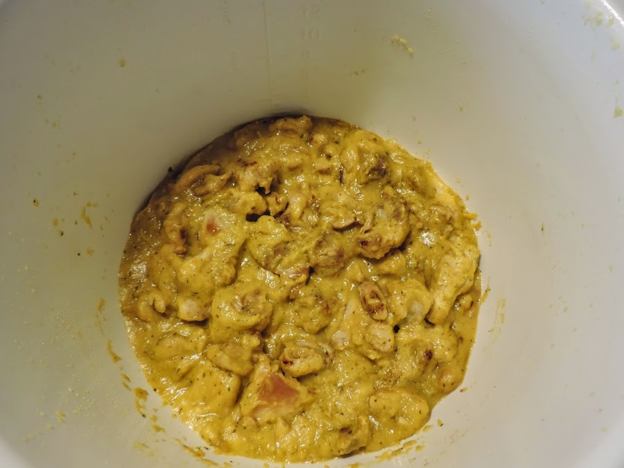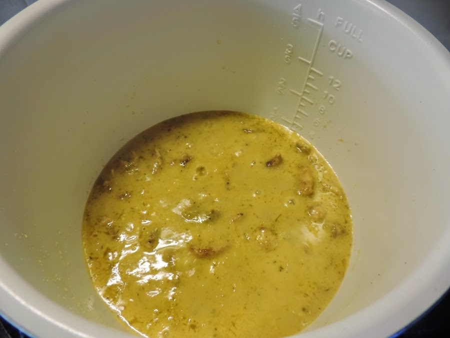 La nata (crema de leche), el agua y el jugo que teníamos reservado de macerar el pollo.