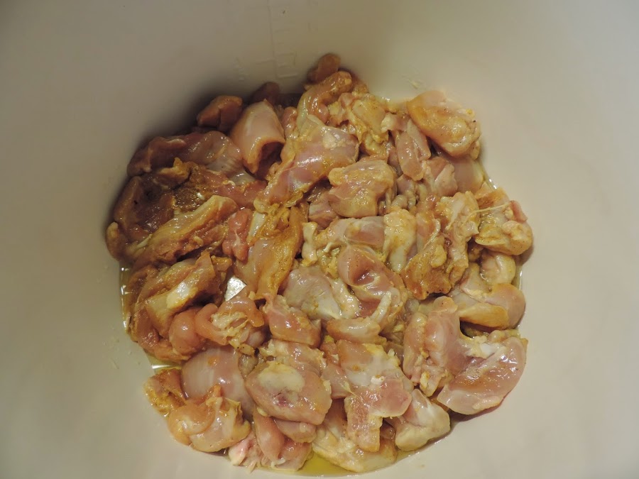 50 grs. Aceite para freír el pollo en la cubeta de la olla.