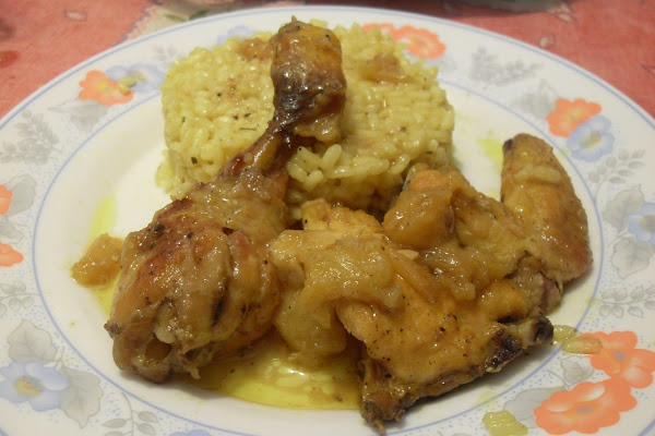 Elaboración:Limpiar y cortar el pollo de los cuartos en dos.