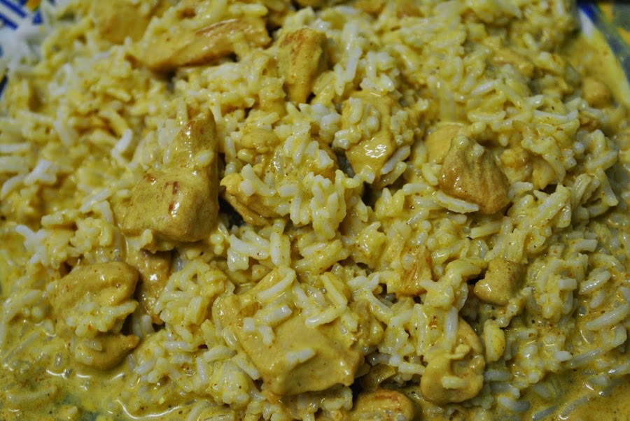 Cuando el pollo este bien dorado añadimos el curry y le damos unas vueltas para que luego no de regusto a polvo y ya añadir la leche de coco ( la nata (crema de leche) o la leche) cocer unos minutos y listo para servir.