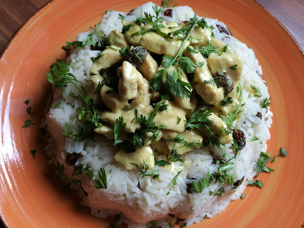 - Cuando la salsa de curry esté espesa, añadimos el otro puñado de pasas, removemos y paramos el fuego.
