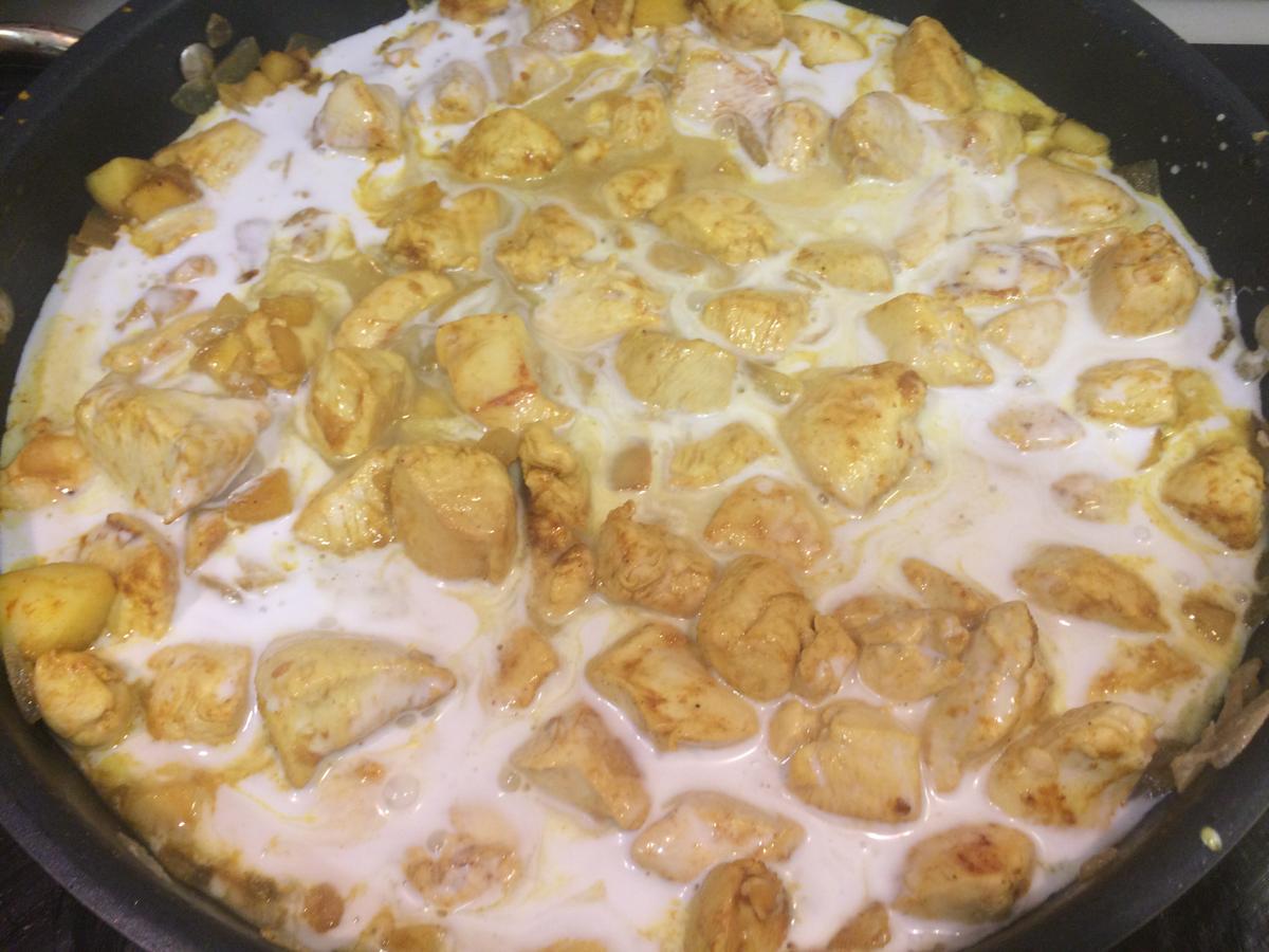 Poner el curry normal y si queréis que esté más sabroso un poco del picante, siempre al gusto de cada uno.( a mí me gusta fuertecito).