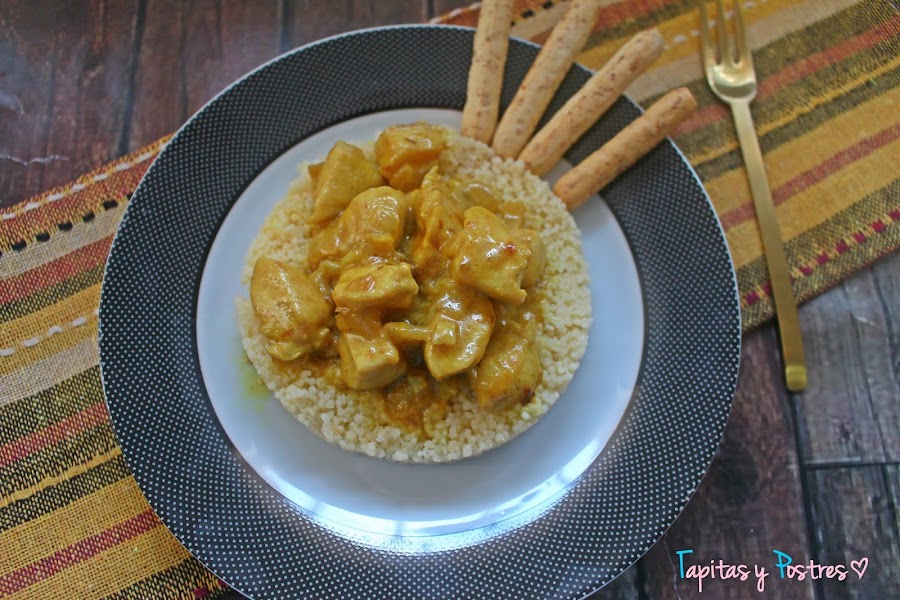 Yo lo he acompañado de cous cous, pero seguro que con arroz basmati o con unas patatitas fritas queda de lujo también.