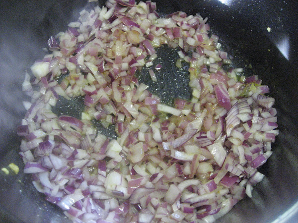 1º " En una sartén ponemos a freír la cebolla cortada pequeña, tal y como se ve en la foto.