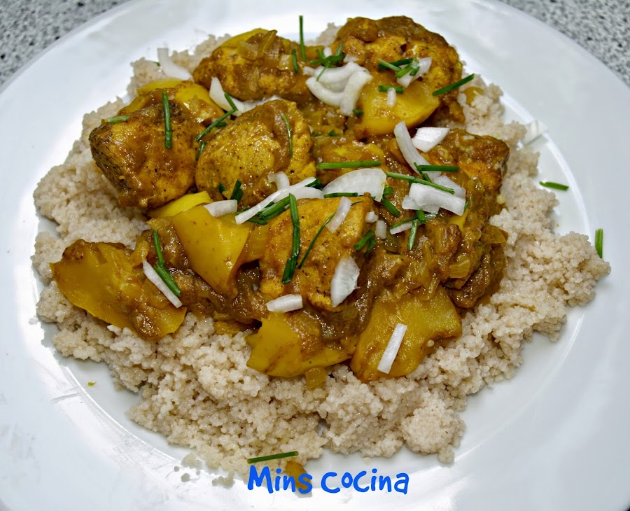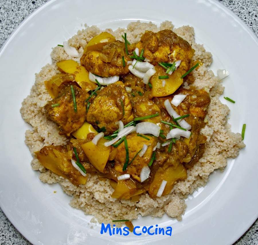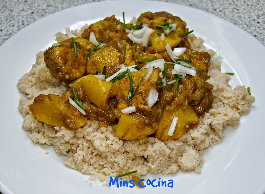 - Por último cortamos trozos o rodajas finas de cebolleta y cebollino, y espolvoreamos por encima antes de servir. Yo lo acompañé de cuscus, cocido sin más. Mezclado con la salsa queda delicioso. También va fenomenal con arroz o quinoa, lo que os guste.