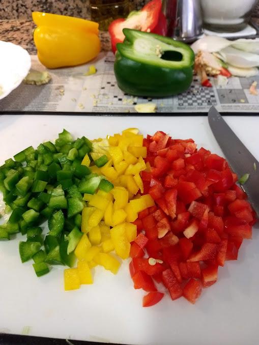 1 pimiento verde, 1 rojo y 1 amarillo pequeños