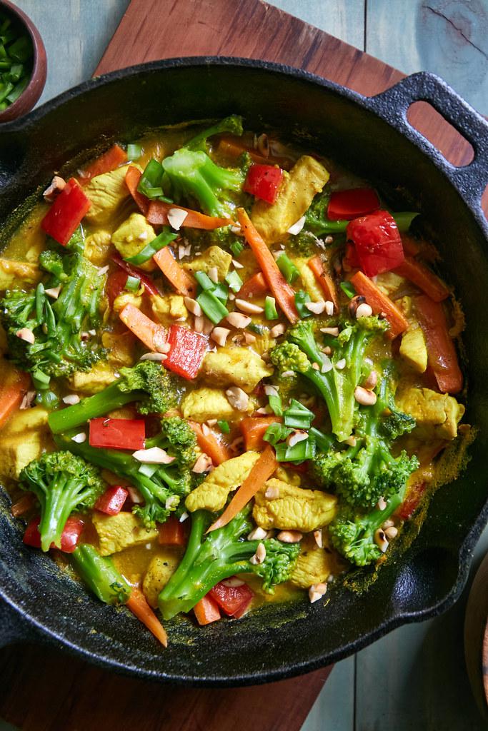 Una receta salvavidas que puedes preparar con las verduras que tengas disponibles o que se están echando a perder para darle color a este sencillo pero delicioso plato de pollo al curry.
