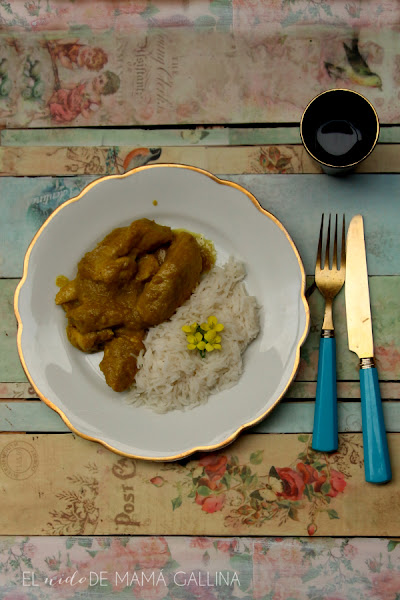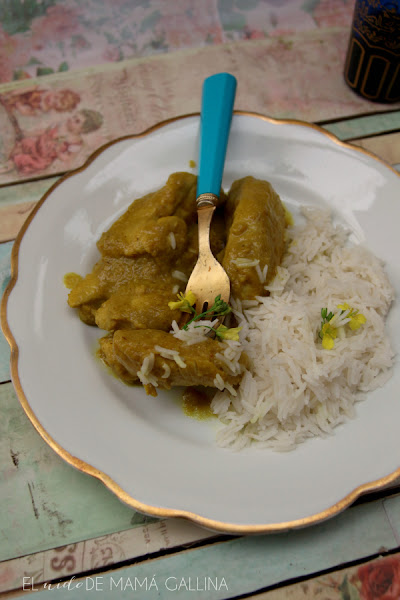 La mayoría de las recetas de curry suelen llevar nata (crema de leche) o leche de coco, que tienen bastante materia grasa, pero de esta forma conseguimos una textura muy suave y cremosa de la salsa sin necesidad de añadirle nada más.