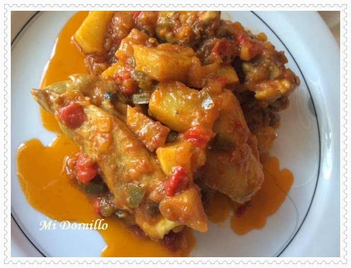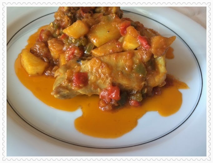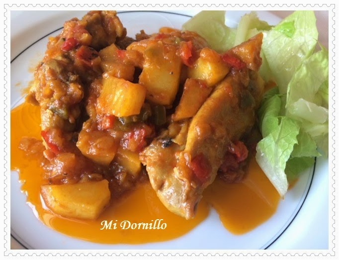 Un día en Málaga, me ofrecieron tomar de tapa en un bar, pollo al curry, como me gusta tanto, dije que si. Cuando llego la tapa, que era grandecita, vi que era "diferente" al que estoy acostumbrada a ver por otros bares o restaurantes, y a la que yo hago algunas veces para mi. Este Pollo al Curry no tenia nata (crema de leche). Así que como me gusto bastante decidí intentar hacerlo, por el sabor , ya que no tenia la receta, y este es el resultado, que la verdad me ha gustado mucho y en casa se lo han comido divinamente, ya que no lleva tanto curry.