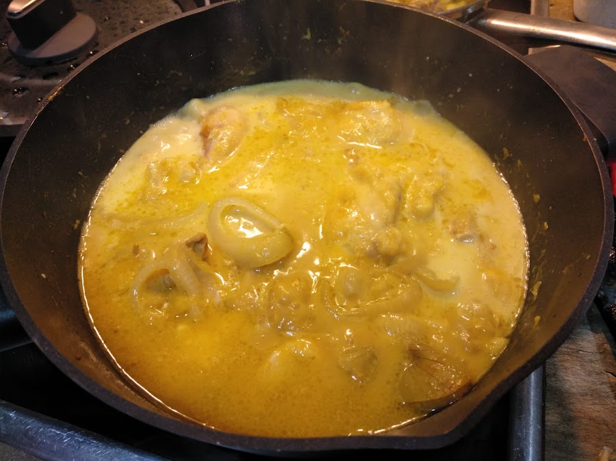 Si se nos queda la salsa muy líquida, quitamos el pollo, subimos el fuego y dejamos hervir para que espese, revolviendo de vez en cuando y vigilando para que no se nos queme.