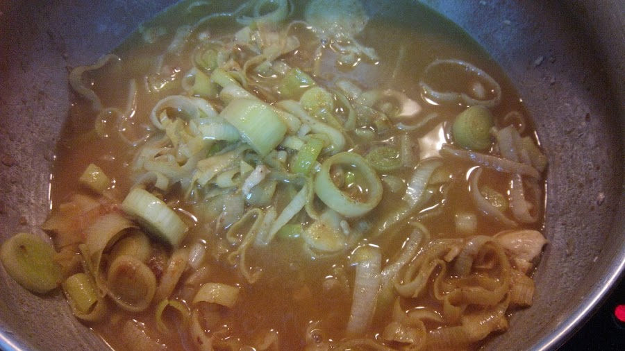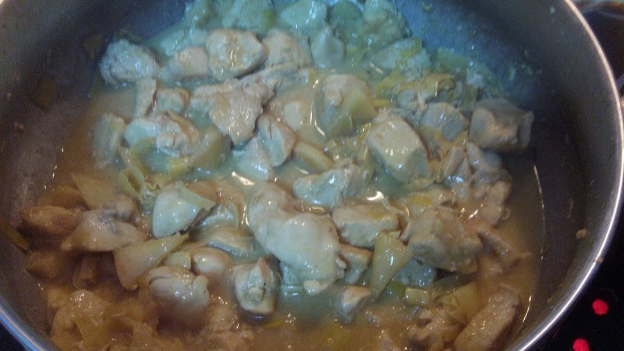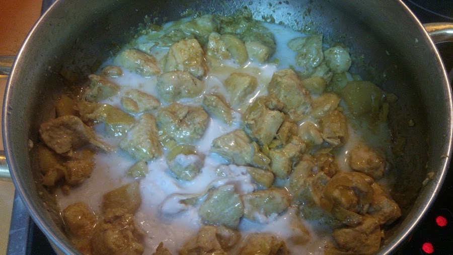 Rectificamos de sal si es necesario y dejamos cocer unos 10 minutos. Pocos minutos antes de apartar del fuego añadimos la leche de coco, apagamos el fuego y dejamos reposar unos minutos.