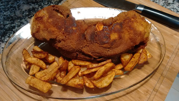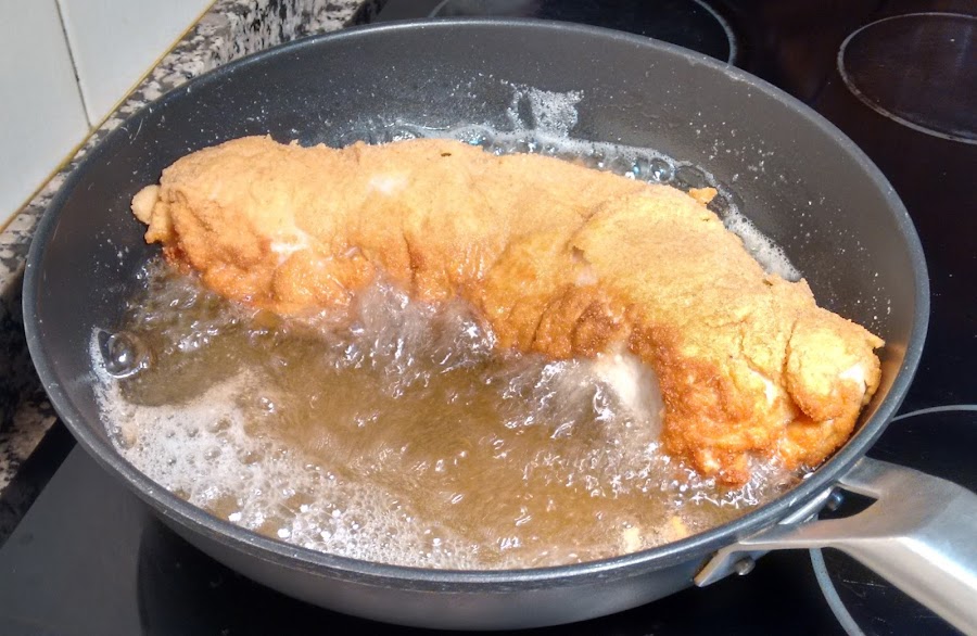 Como es grueso lo freímos a fuego medio para que se haga bien por dentro.