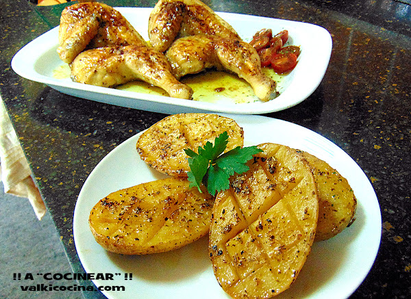 *Si en algún momento del proceso, ves que se queda con poco jugo ( en mi caso no ha sido necesario ), puedes añadir un poco de agua mezclada con vino o disolver un trocito de pastilla de caldo de pollo o carne en agua templada e incorporarlo a la bandeja.