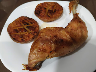 y ya por último lo llevamos al horno que previamente habremos calentado a 180º más o menos según horno durante 1 horita o un poquito más ya os digo dependiendo de la potencia de vuestro horno, eso sí cada 20 minutos más o menos le dais la vuelta al pollo para que se haga bien por ambos lados, y nada sólo os queda esperar a que se dore bien mirando siempre que no se nos quemen las patatas, lo colocáis lo más abajo del horno y fuego arriba y abajo y nada cuando veáis que está listo lo sacáis y ya sólo os quedará emplatar y disfrutar de una receta sana, rica y saludable, buen provecho