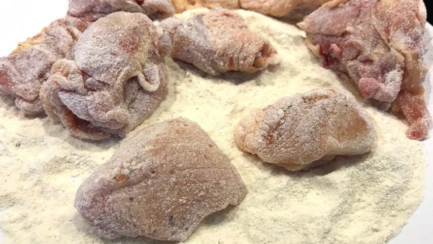 Lo enharino con harina de trigo duro pero puedes usar harina de todo uso.