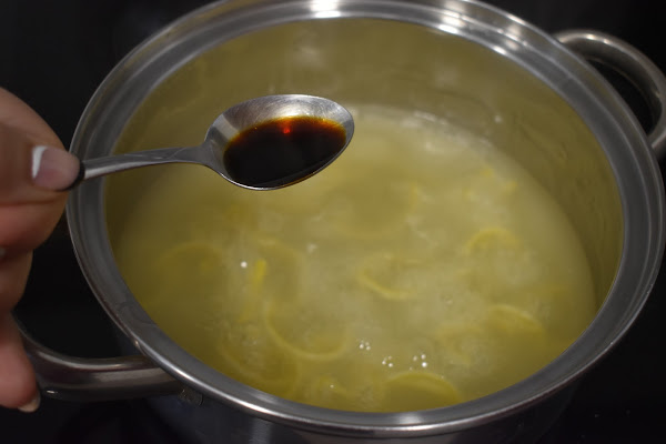 Añadimos la cucharada de salsa de soja y mezclamos bien.