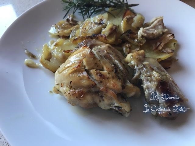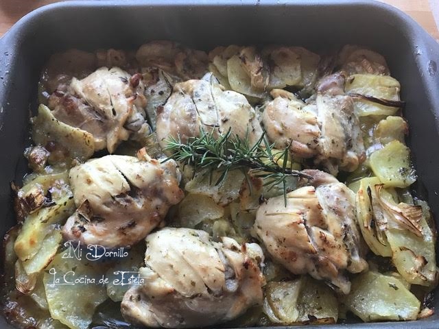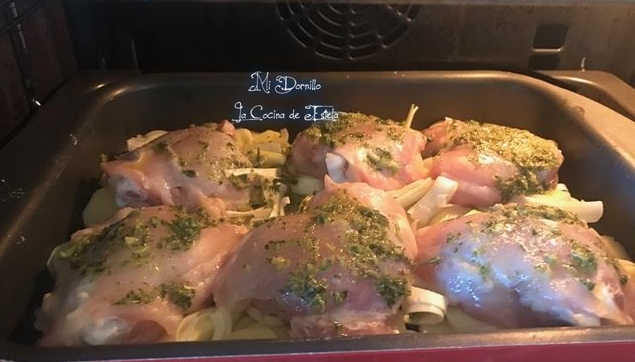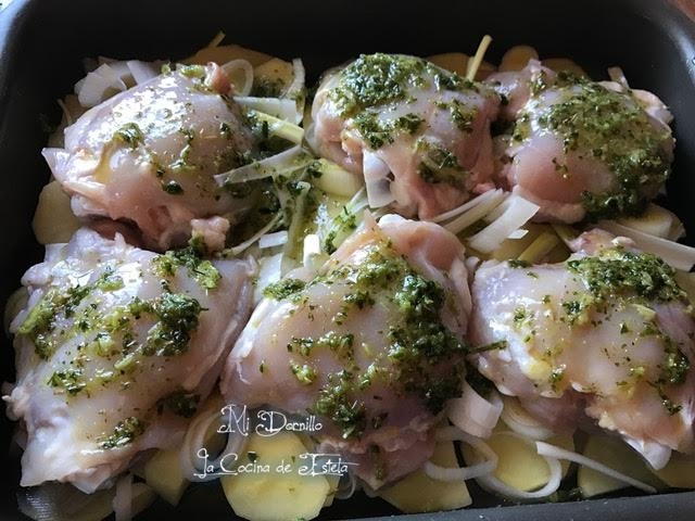 Encima ponemos los trozos de pollo con bañamos con el majado.