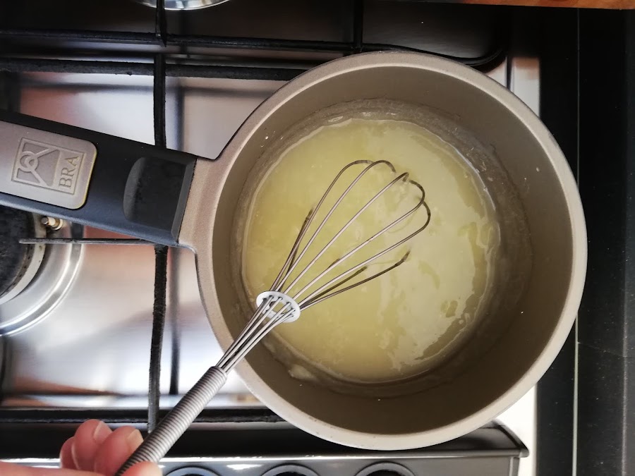 2. Vamos preparar la salsa: ponemos todos los ingredientes en un cazo y sin dejar de mover la espátula a fuego suave, esperamos a que espese. La reservamos.