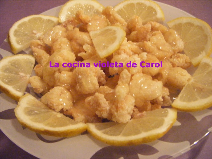 Me centro en el blog de Rosa, La Rosa Dulce, que es el que nos toca asaltar este mes, muy centrada en las recetas de pollo, intento no mirar otras recetas, pero es imposible, se me van los ojos, ""Carol, céntrate, sólo recetas de pollo"", ¿pollo al jengibre? mmm que rico, pero no tengo miel, ¿pollo a la cerveza? que pinta, pero no tengo sopa de cebolla de sobre, esto es una tortura!! Hasta que aparece ante mis ojos el Pollo al limón, yujuuuuu!!! Tengo todos los ingredientes y encima es el plato que siempre pide mi marido en el chino. He cambiado el vinagre, ya que Rosa utiliza el de manzana y yo tengo alergia a esta fruta y en lugar de filetes he usado taquitos, pero os digo que esta de escándalo y se hace súper rápido. Repetiré seguro. Gracias Rosa