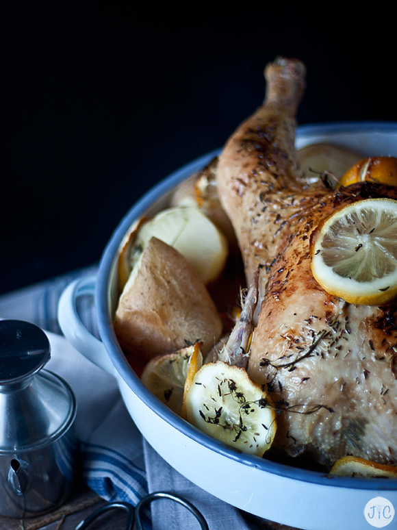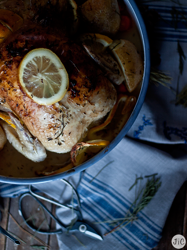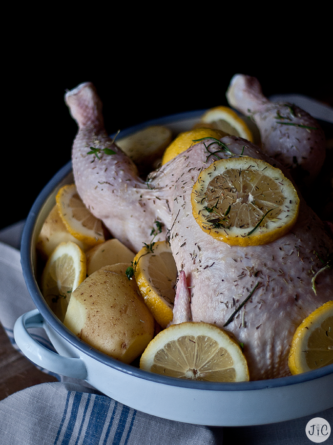 El pollo asado es uno de esos platos que todos comemos casi casi una vez a la semana. En mi casa ha sido tradición durante mucho tiempo comerlo el domingo. Para recuperar un poco esa tradición hogareña, de vez en cuando prepara en Madrid un pollo asado. Me gusta probar diferentes versiones: cerveza, coca cola o esta de limón y finas hierbas. Es una receta sencilla, con la que disfrutaréis de un plato tan común y versátil como el pollo asado.