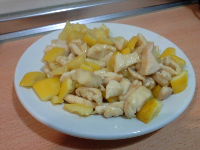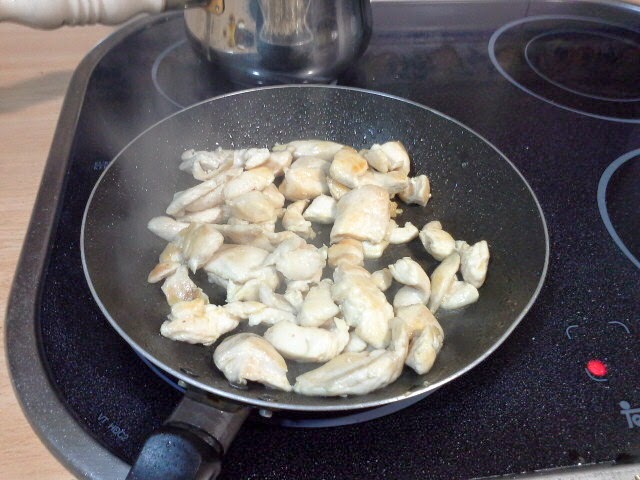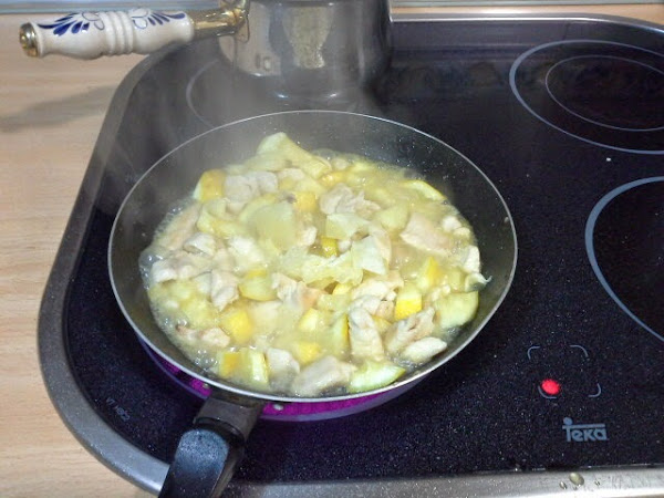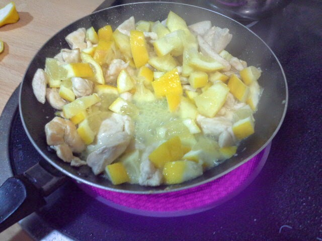 y cuando el pollo este bien hecho, los incorporamos a la sarten