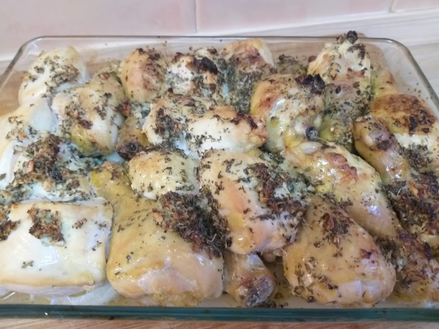 Hola holaaa!!! Empezamos año y seguimos con nuevas recetas. Os traigo una receta que vale tanto para una comida de diario como para una comida de fin de semana. Deliciosa. Os recomiendo que, aunque veréis en las fotos tanto muslitos de pollo como pechuga, la hagáis con muslitos y contra muslos porque la pechuga queda bastante seca. Aunque mis hijos han dicho que a ellos les estaba bien así. Yo he cocinado una bandeja con ingredientes para 8 pero os pongo los ingredientes para 4 personas. Espero que os guste.