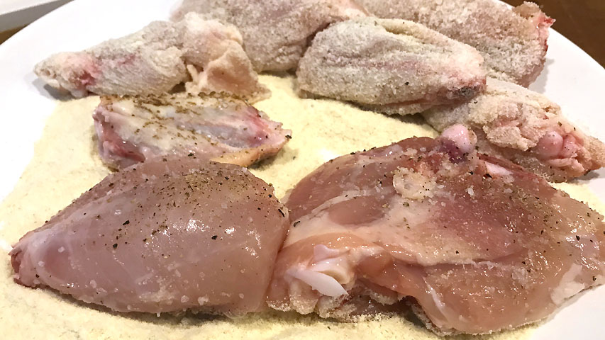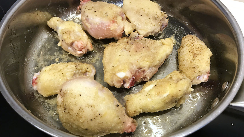 Dora los trozos de pollo.